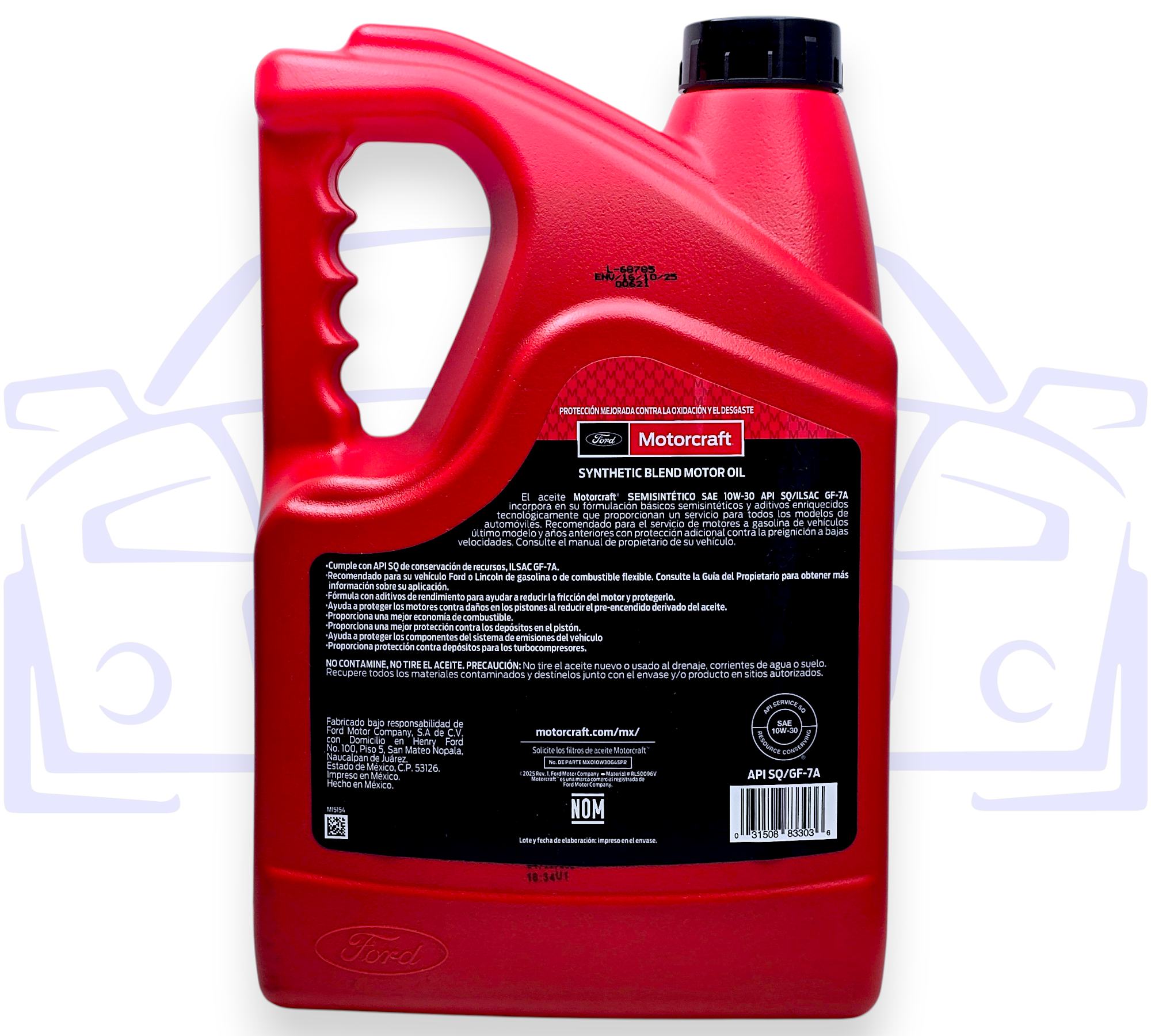 El aceite Motorcraft SEMISINTETICO SAE 10W-30 API SQ/ILSAC GF-7A